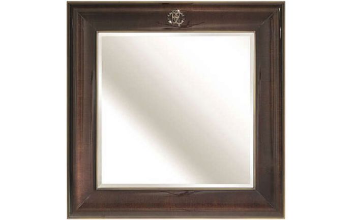 Многослойная деревянная структура, в основном шпонированная из коллекции. Металлический каркас в матовой отделке из коллекции. Скошенное натуральное зеркало. RC «драгоценная монограмма» из литой латуни с отделкой платиной или золотом.