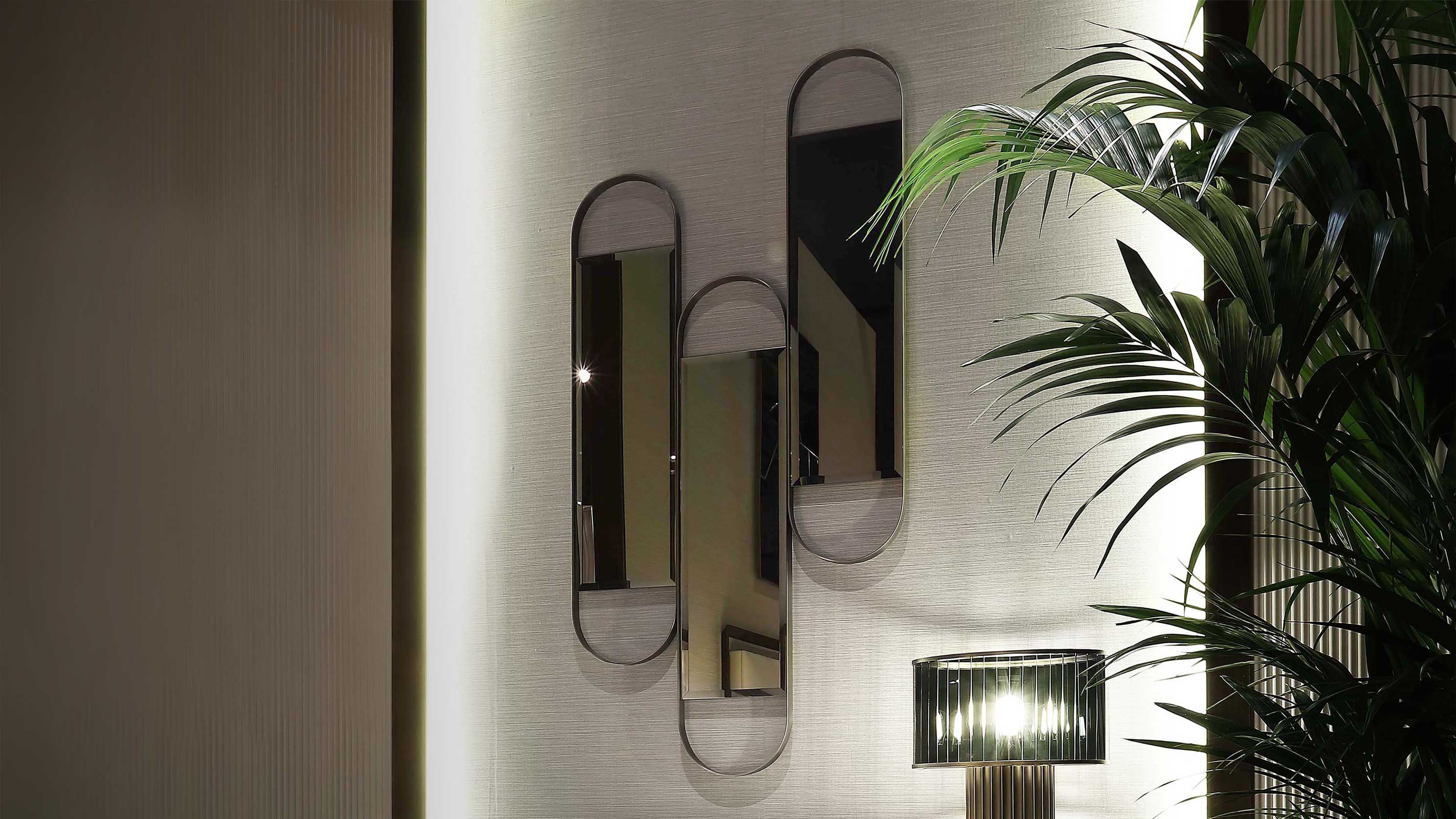 Овальная бронзовая рама с прямоугольным зеркалом; два или более зеркал могут быть собраны вместе для создания композиций.