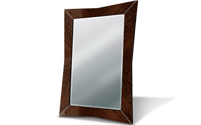Напольное зеркало из шпона европейского волнистого эвкалипта с глянцевым полиэфирным покрытием.