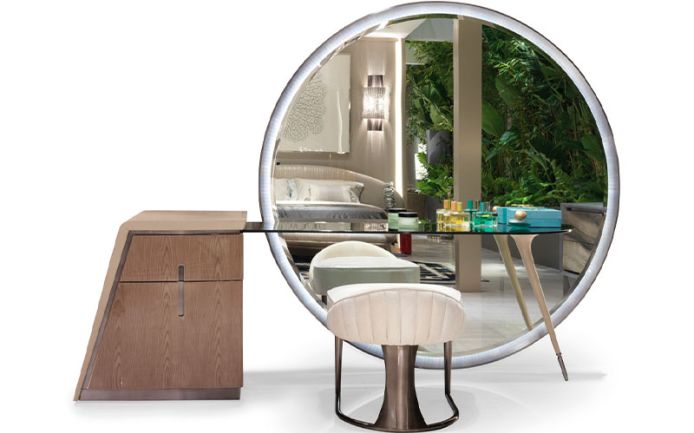 Матовая рама из нержавеющей стали с коническим краем. Светодиодное освещение по периметру с сенсорным выключателем. Металлические детали доступны в ассортименте матовой отделки.